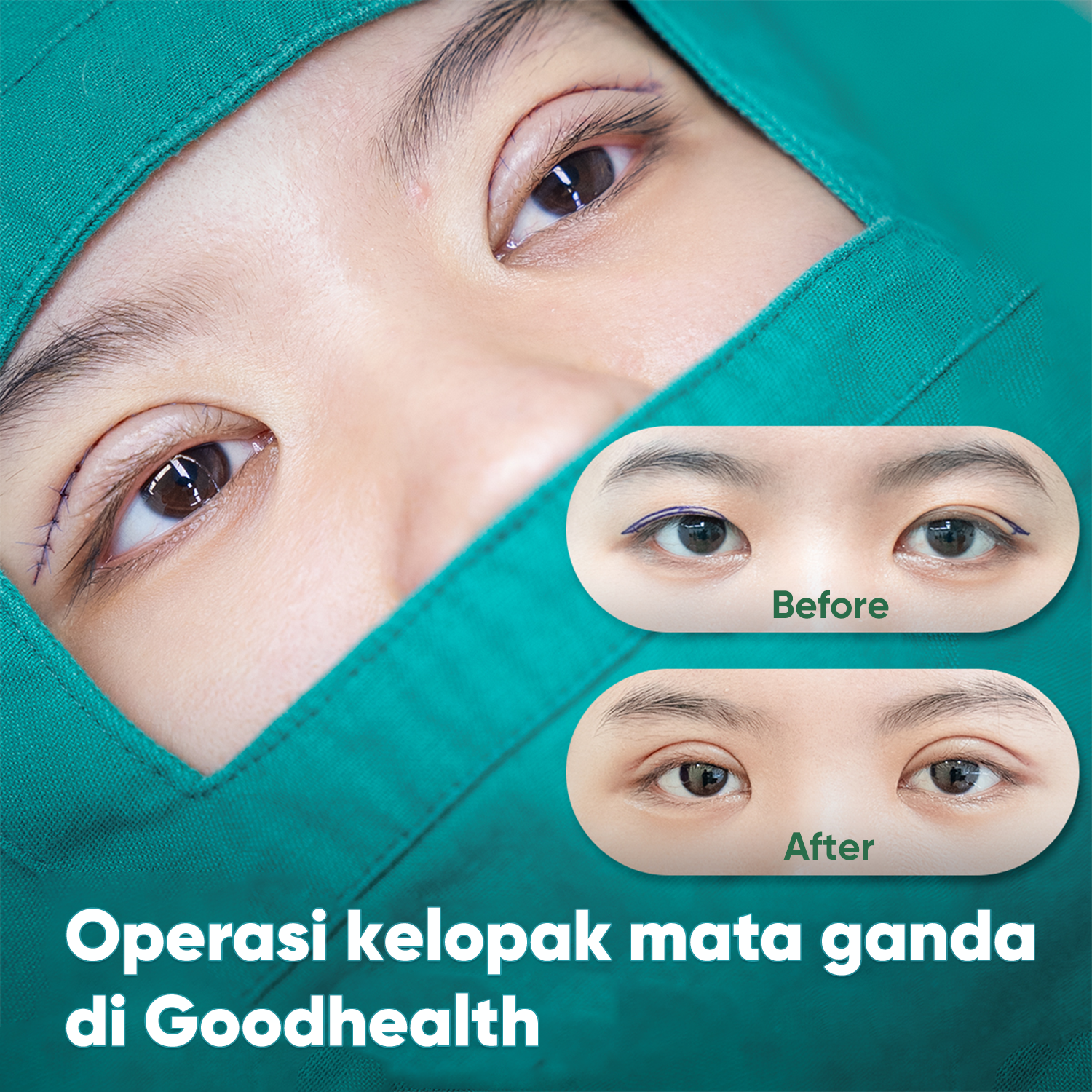 - Kami menggunakan teknik operasi kelopak mata modern dan aman.